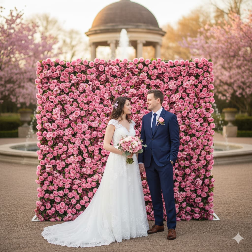 Atlasflowerswall 5D Pink Silk Rose Flower Wall Backdrop for Wedding Party Decor
